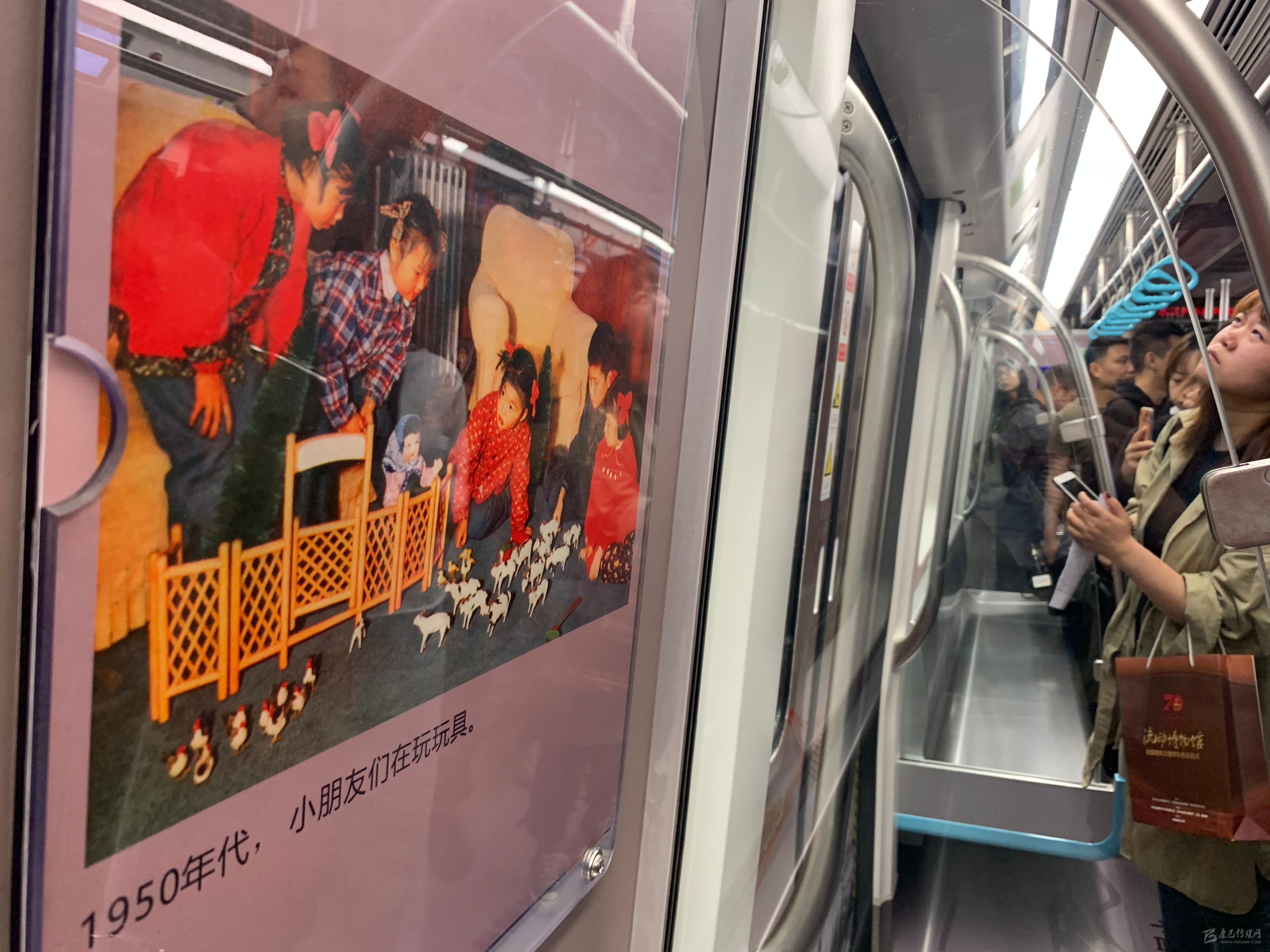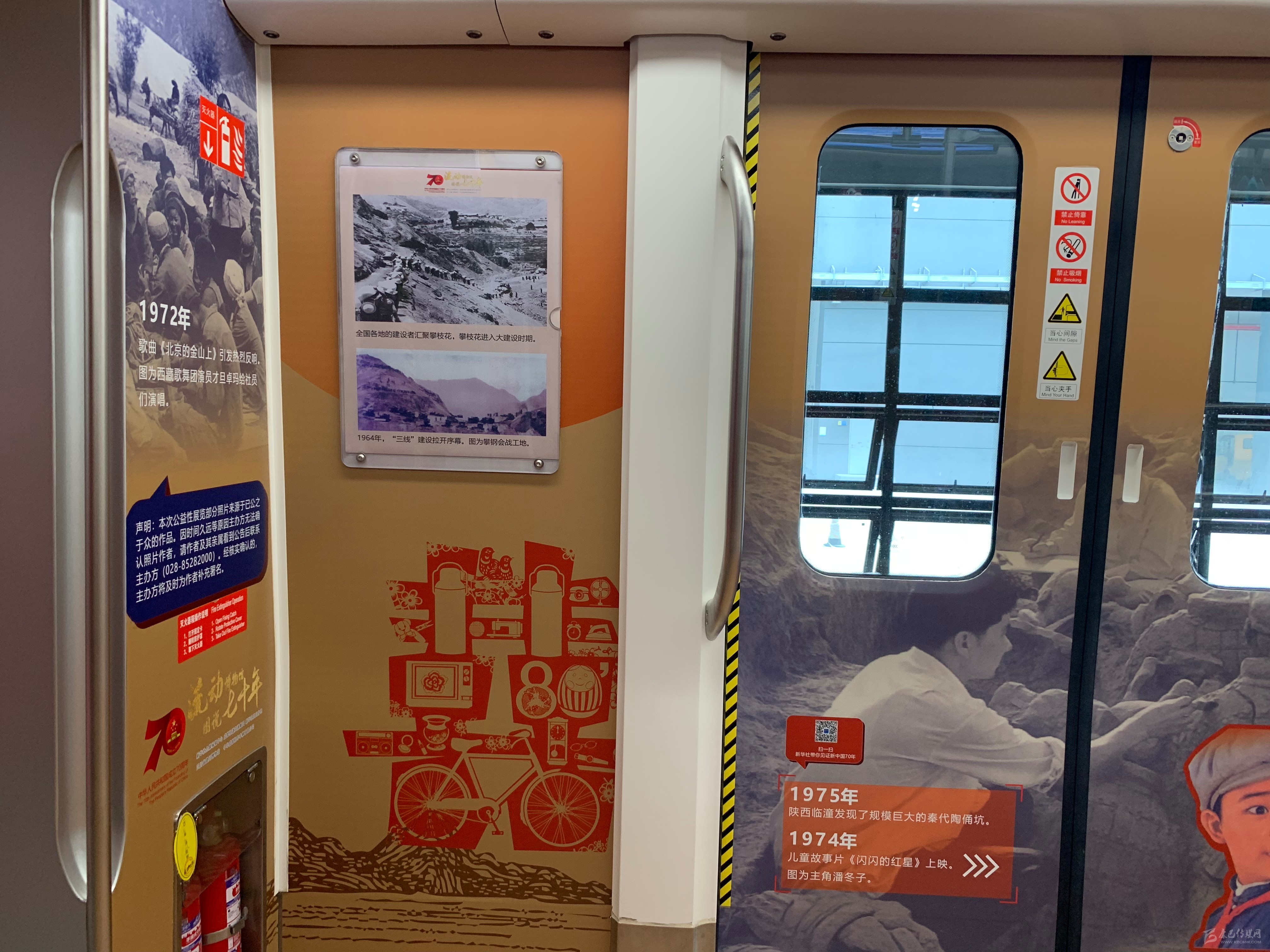 這趟主題列車由新華通訊社與成都軌道交通集團(tuán)、四川省建川博物館、中車集團(tuán)成都公司共同打造。主辦方精心收集、挑選了1949-2019年的300多張重要?dú)v史照片和文物復(fù)印件,通過(guò)時(shí)間長(zhǎng)廊的設(shè)計(jì),將新中國(guó),特別是四川、成都70年的奮斗史和普通人衣食住行的巨大變化逐年呈現(xiàn)。主題列車上還設(shè)置了多處二維碼,掃碼即可進(jìn)入主辦方開設(shè)的更多專題,把“流動(dòng)博物館”延伸到“網(wǎng)絡(luò)博物館”。