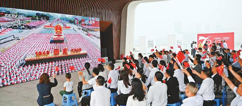 上午10時,慶祝中華人民共和國成立70周年大會開始。通過電視信號,大會盛況傳遞至每個現(xiàn)場?!芭c祖國母親同在,祝福祖國繁榮昌盛。”這是大家共同的心聲?!醣緢笥浾?林凌 何勤華 程文雯 徐中成 陳碧紅 文莎