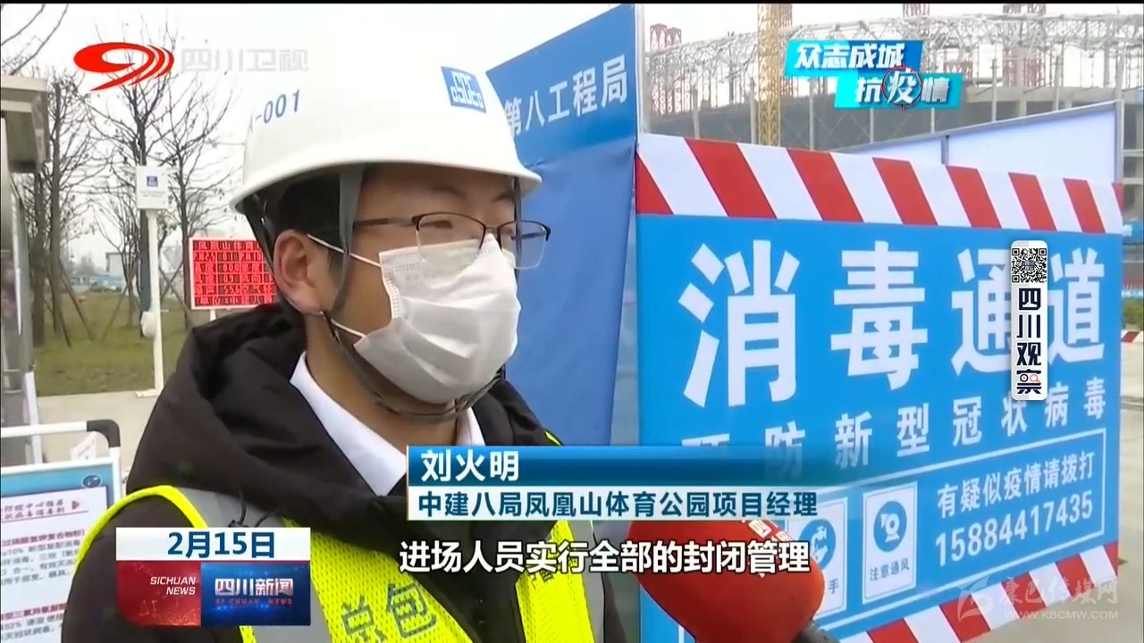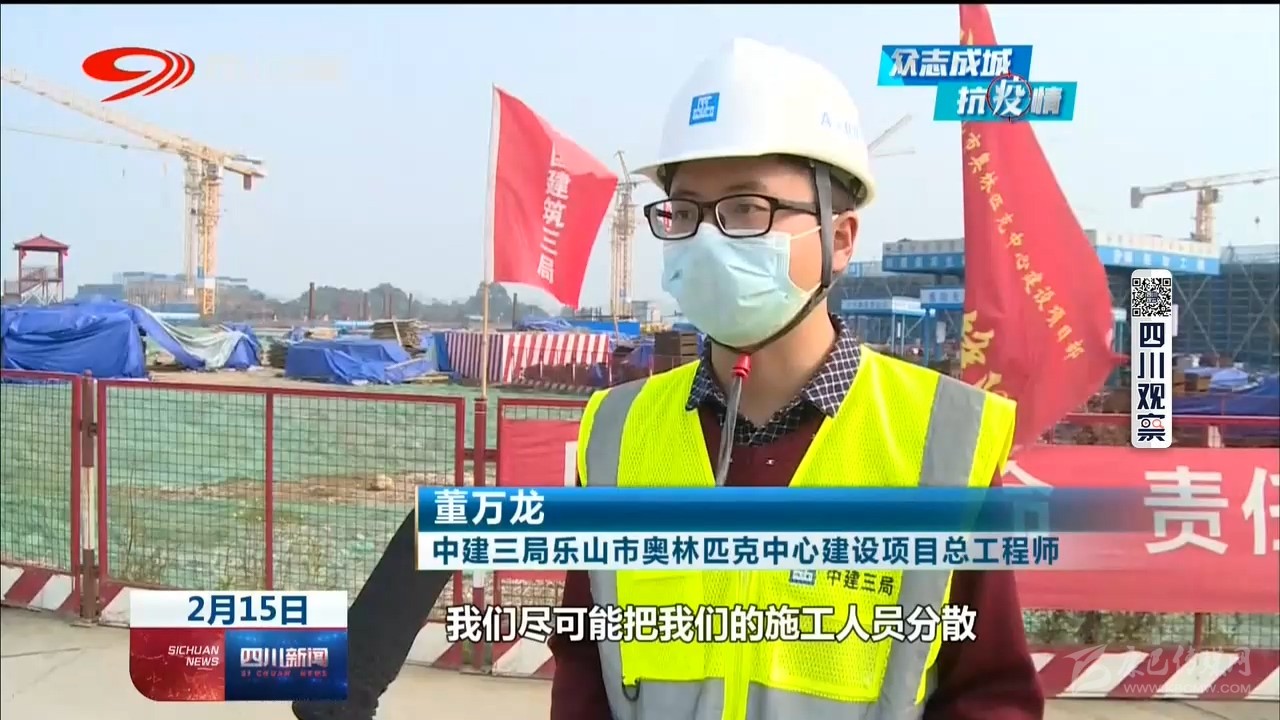 中建三局樂山市奧林匹克中心建設項目總工程師 董萬龍:“我們盡可能把我們的施工人員分散,不要聚集,對內我們做好防控物資的保障,口罩、消毒水以及酒精這些防疫物資已經齊全?!?/p>
