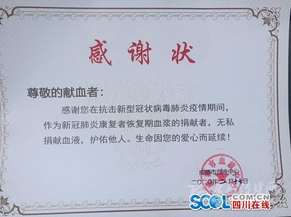 “出院的時(shí)候,我特地與我的主治醫(yī)生說,有相關(guān)的血液捐贈(zèng)或者其他配合的需求請隨時(shí)聯(lián)系我!”35歲的捐獻(xiàn)者李某表示,這是我首次獻(xiàn)血,我是湖北武漢人,有親戚朋友在成都,當(dāng)作成都是第二故鄉(xiāng),我是1月22日到成都探親,23日下午發(fā)熱在成都市公共衛(wèi)生臨床醫(yī)療中心確診和治療,2月6日出院。在出院治療期間,李某表示,最難忘的就是每次醫(yī)生來查房,都會鼓勵(lì)我說,放心你一定會康復(fù)的,“我難忘成都這份恩情!”