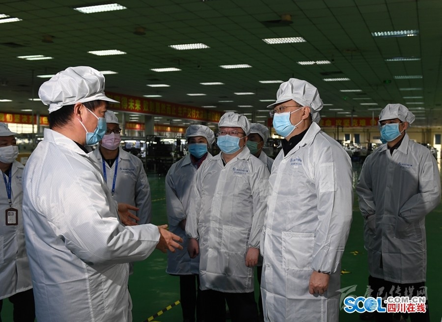 在四川九洲電器集團,尹力詳細了解企業(yè)落實疫情防控措施和復(fù)工復(fù)產(chǎn)情況。