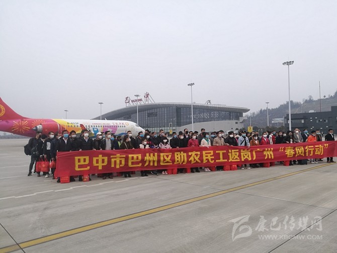 2月26日,巴中恩陽機(jī)場(chǎng)首班農(nóng)民工返崗包機(jī)飛赴廣州。