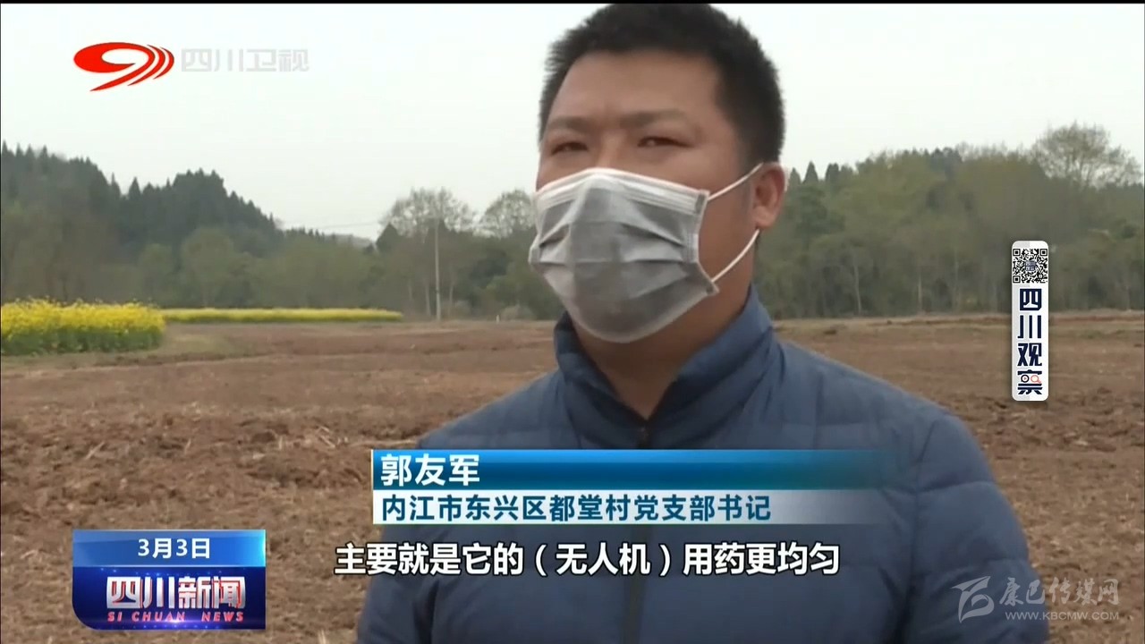 內(nèi)江市東興區(qū)都堂村黨支部書(shū)記 郭友軍:主要就是它的(無(wú)人機(jī))用藥更均勻,除草更有效果。