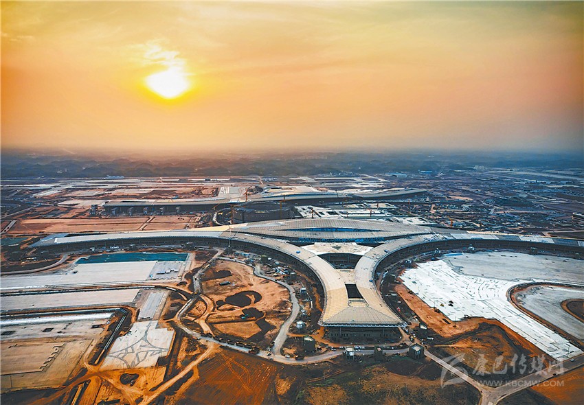 俯瞰晨曦中的成都天府國際機場施工現(xiàn)場。成都天府國際機場各項工程自全面復(fù)工以來,在嚴(yán)格防疫的基礎(chǔ)上,力搶工期,加快建設(shè)。