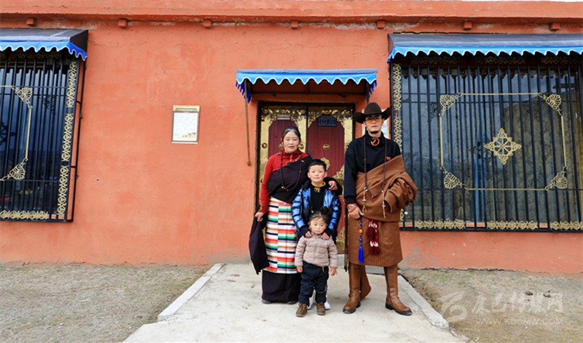 “陶老師把我拍帥一點,全家拍精神一點?!贝迕窠笛胨估纱髦R風(fēng)趣地開著玩笑。2018年,貧困戶降央斯郎一家四口在易地搬遷分散安置項目幫助下,從牧區(qū)搬進了新家。