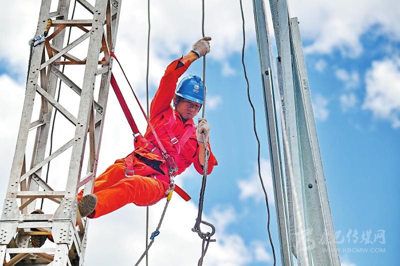 到達施工現(xiàn)場,組塔工作也是十分艱難,鐵塔結(jié)冰,僅登塔時間便多出一倍,而作業(yè)時間每次不能超過半小時,還要隨時面臨大風(fēng)、大雨、冰雹等天氣,導(dǎo)致工期推進速度較平原地區(qū)慢一倍時間?!盀榱粟s在6月20日完成任務(wù),我連每天與女兒視頻的時間都省了,全力投入工作中。”項目部負責(zé)導(dǎo)線展放的電力工人楊彪說。
