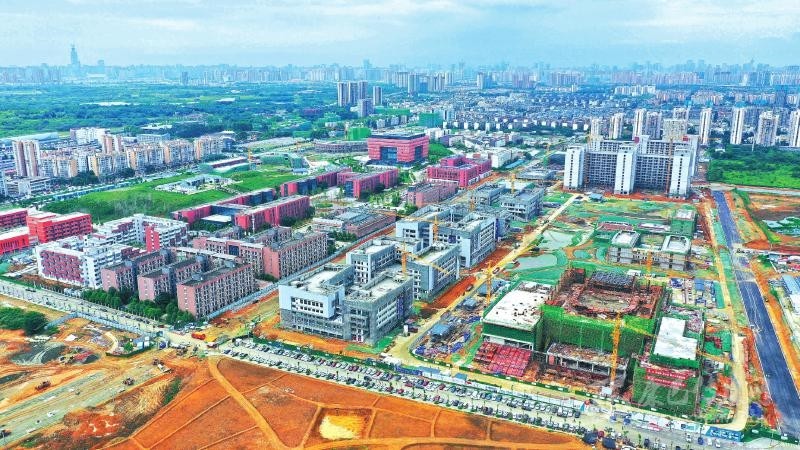 8月3日,鳥瞰成都龍泉驛區(qū)成都大學校內(nèi)的在建大運村。該項目21個新建單體中,除藝術(shù)中心外,其余20個新建單體主體結(jié)構(gòu)施工已完成,進入裝飾裝修階段。