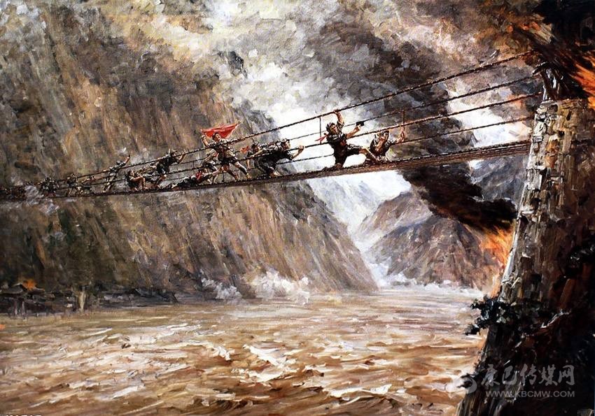 油畫《飛奪瀘定橋》,現(xiàn)藏于中國人民革命軍事博物館。