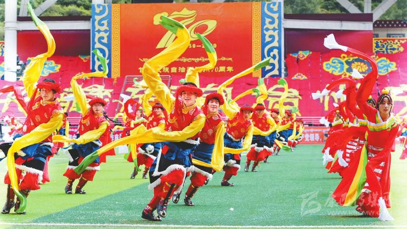 9月17日,甘孜藏族自治州成立70周年慶祝大會在康定舉行。各族群眾表演以“圣潔甘孜筑夢新時(shí)代”為主題的文藝節(jié)目。四川日報(bào)全媒體記者 歐陽杰 攝