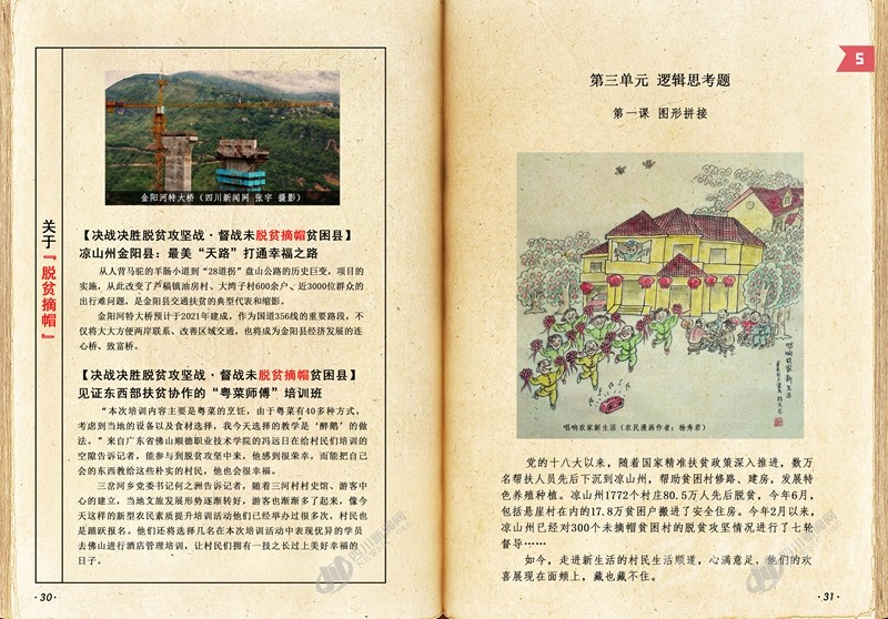 本節(jié)數(shù)學課,我們將通過了解掌握圖形拼接概念,把走入新生活群眾的笑臉拼湊完整,除了基礎練習,還設置了進階版練習,在圖形拼接的樂趣中,進一步感受脫貧攻堅帶來的實實在在的成效。