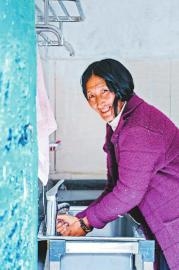 通過(guò)參加學(xué)習(xí)班,不少村民養(yǎng)成了好習(xí)慣。圖為9月13日,卡娘村一位村民正在洗手?! ∷拇ㄔ诰€記者楊樹攝