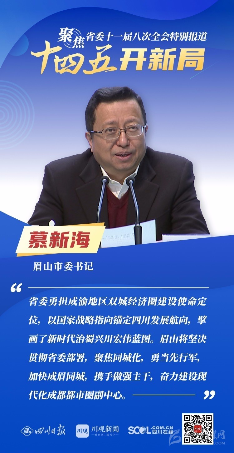 12月3日,中共四川省委十一屆八次全會(huì)在成都開(kāi)幕,全會(huì)將深入學(xué)習(xí)貫徹黨的十九屆五中全會(huì)精神,審議《中共四川省委關(guān)于制定四川省國(guó)民經(jīng)濟(jì)和社會(huì)發(fā)展第十四個(gè)五年規(guī)劃和二〇三五年遠(yuǎn)景目標(biāo)的建議(討論稿)》,為未來(lái)5年乃至更長(zhǎng)時(shí)期四川發(fā)展謀劃新藍(lán)圖 。