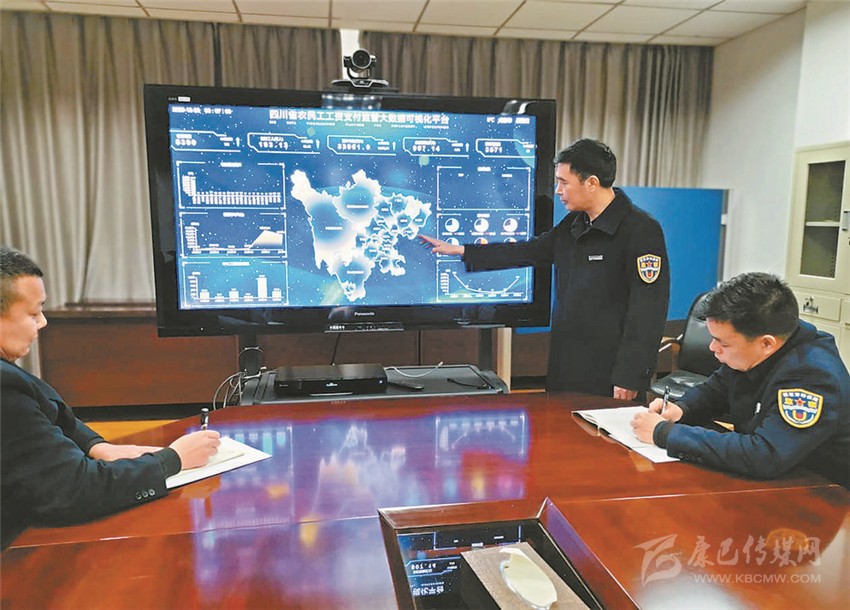 省勞動保障監(jiān)察總隊工作人員通過“四川省農民工工資支付監(jiān)管大數據可視化平臺”,對全省建筑施工項目工資支付情況進行分析。