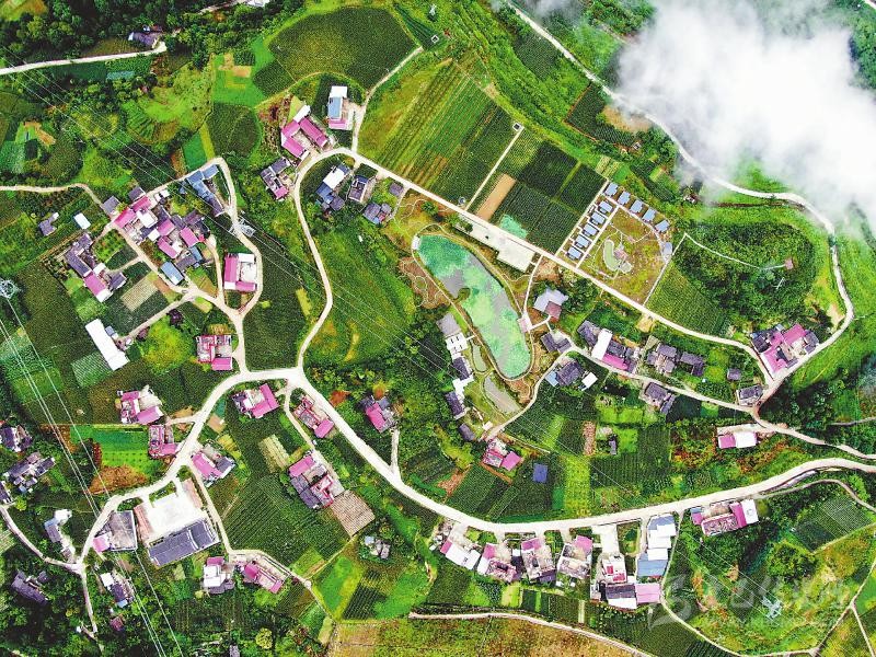 2020年8月17日海子坪村航拍。甘孜州瀘定縣海子坪村打造的“高科農(nóng)技+高端民宿”吸引了眾多游客前來觀光旅游,村民的生活也發(fā)生著美麗的蛻變。 四川日報(bào)全媒體記者衡昌輝攝