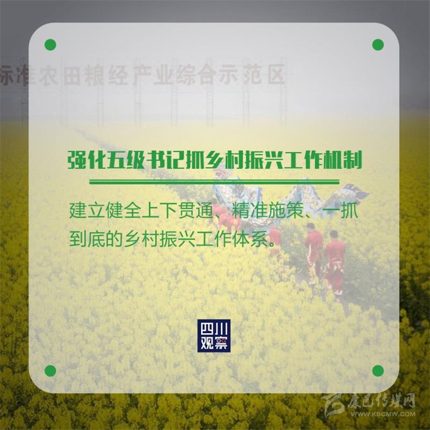 近日,中共四川省委、四川省人民政府印發(fā)《關于全面實施鄉(xiāng)村振興戰(zhàn)略開啟農業(yè)農村現(xiàn)代化建設新征程的意見》,全文共7個部分41條,這是2004年以來,四川省委、省政府連續(xù)18年,以省委一號文件形式部署“三農”工作。文件提出了哪些硬舉措?