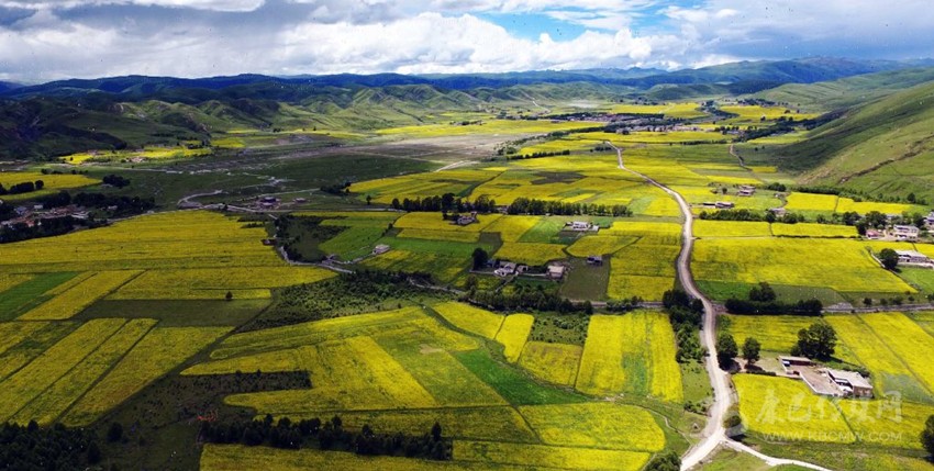 2018年7月8日,甘孜州省道303道孚縣公路兩側(cè)油菜花盛開。 李向雨 攝