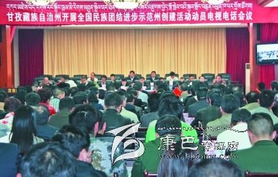 本網訊(記者 秦松 文/圖) 5月26日,全州開展全國民族團結進步示范州創(chuàng)建活動動員電視電話會議在康定召開。會議表彰了全州第四次民族團結進步模范集體、模范個人(戶),安排部署全國民族團結進步示范州創(chuàng)建工作。