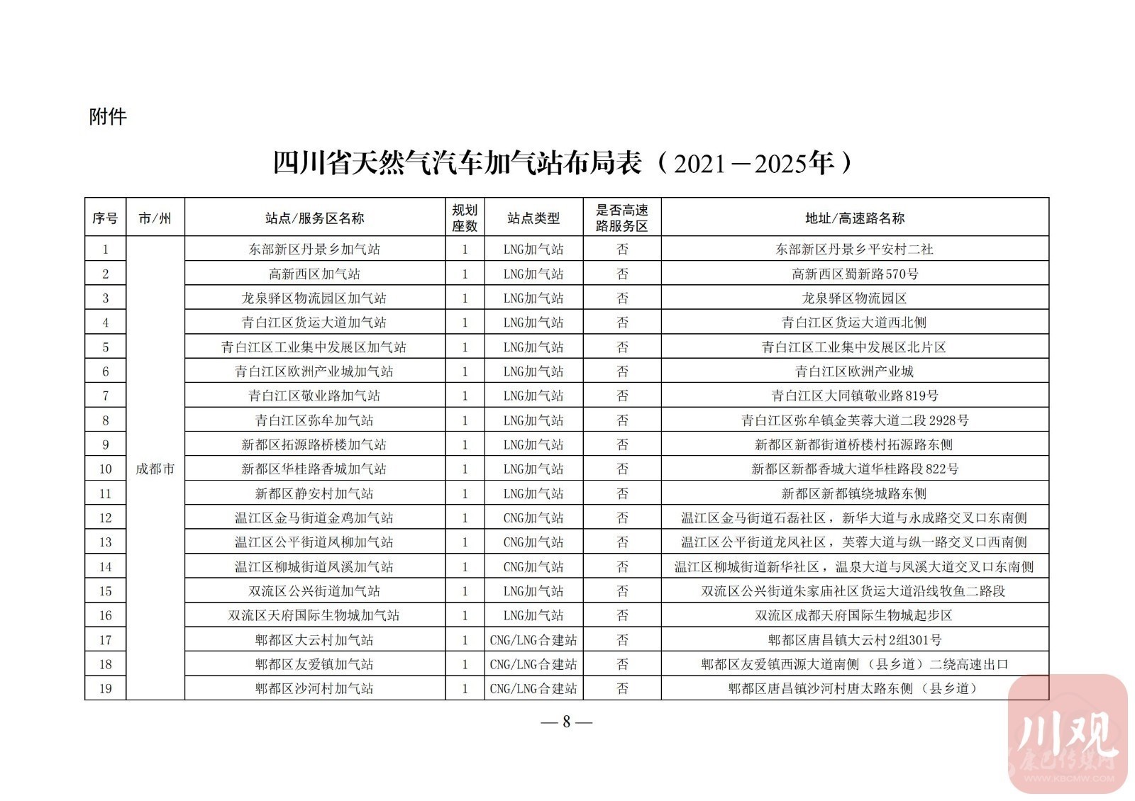 日前,四川省發(fā)展和改革委員會、四川省能源局印發(fā)《四川省天然氣汽車加氣站布局方案(2021-2025年)》(以下簡稱《方案》)?!斗桨浮诽岢龅?025年,四川將規(guī)劃新建加氣站500座(含高速公路服務區(qū)141座),其中,CNG加氣站15座、LNG加氣站401座、L-CNG加氣站8座、CNG/LNG合建站76座。