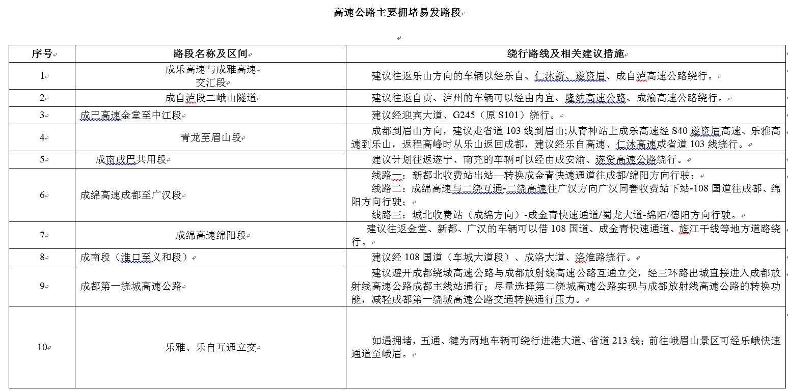 據(jù)氣象部門信息,元旦期間以多云或晴天為主,基本無惡劣天氣,適宜外出。結合我省疫情防控情況和小長假出行特點,預計元旦假期,群眾出行以省內(nèi)探親、短途出游為主,多集中在成都及其周邊地區(qū),部分通往冬季熱門景區(qū)的路段流量將較大增長。