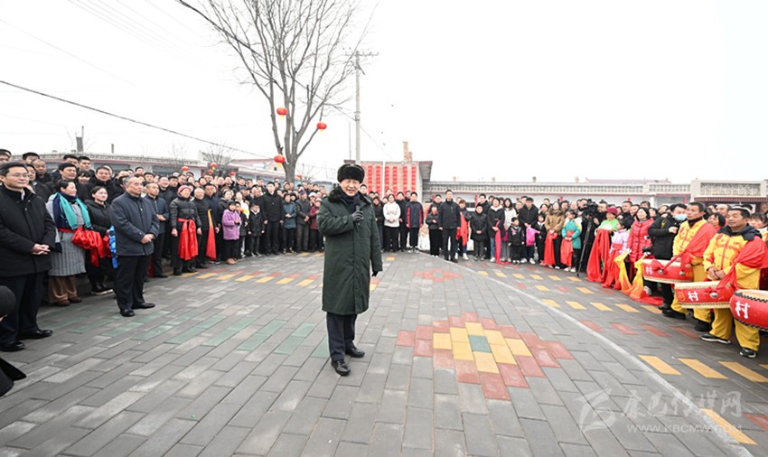 村文化廣場上十分熱鬧,村民們打起威風鑼鼓、扭起秧歌歡慶佳節(jié)??吹娇倳泚砹?,人們高興地歡呼起來。習近平對鄉(xiāng)親們說,我們黨的根本宗旨就是為人民群眾辦好事,為人民群眾幸福生活拼搏、奉獻、服務。我們?nèi)缙诖蜈A了脫貧攻堅戰(zhàn),如期實現(xiàn)了全面建成小康社會目標,現(xiàn)在踏上了全面建設(shè)社會主義現(xiàn)代化國家新征程。建設(shè)現(xiàn)代化國家離不開農(nóng)業(yè)農(nóng)村現(xiàn)代化,要繼續(xù)鞏固脫貧攻堅成果,扎實推進鄉(xiāng)村振興,讓群眾生活更上一層樓,在推進農(nóng)業(yè)農(nóng)村現(xiàn)代化中越走越有奔頭。