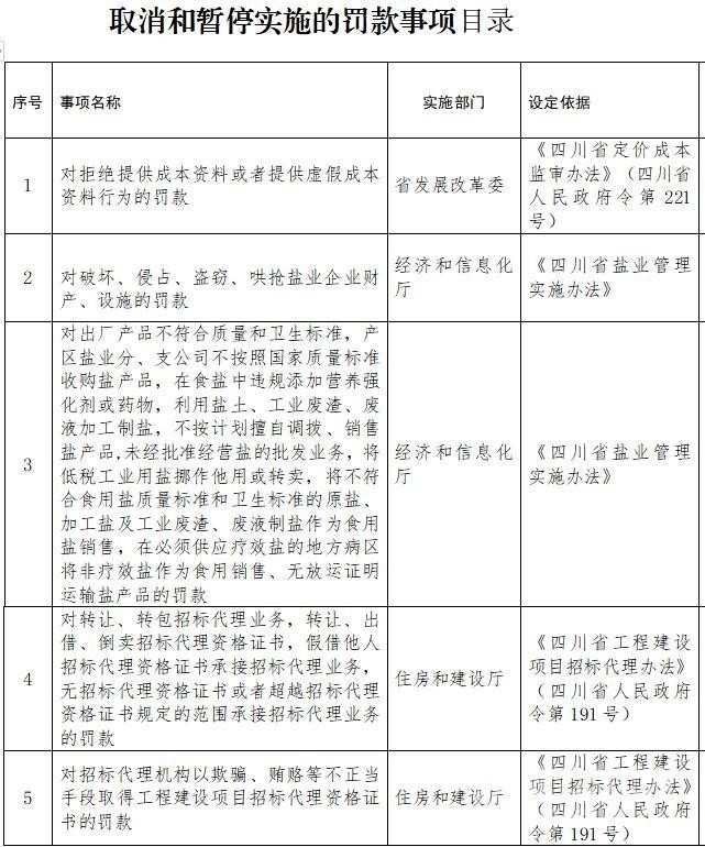 匯總所有意見建議后,《四川省人民政府關(guān)于取消和暫停行使一批罰款等事項的決定(征求意見稿)》決定取消和暫停行使25項罰款事項,其中取消19項,暫停行使6項。罰款事項取消和暫停行使后,依照法定程序修訂相關(guān)省政府規(guī)章。
