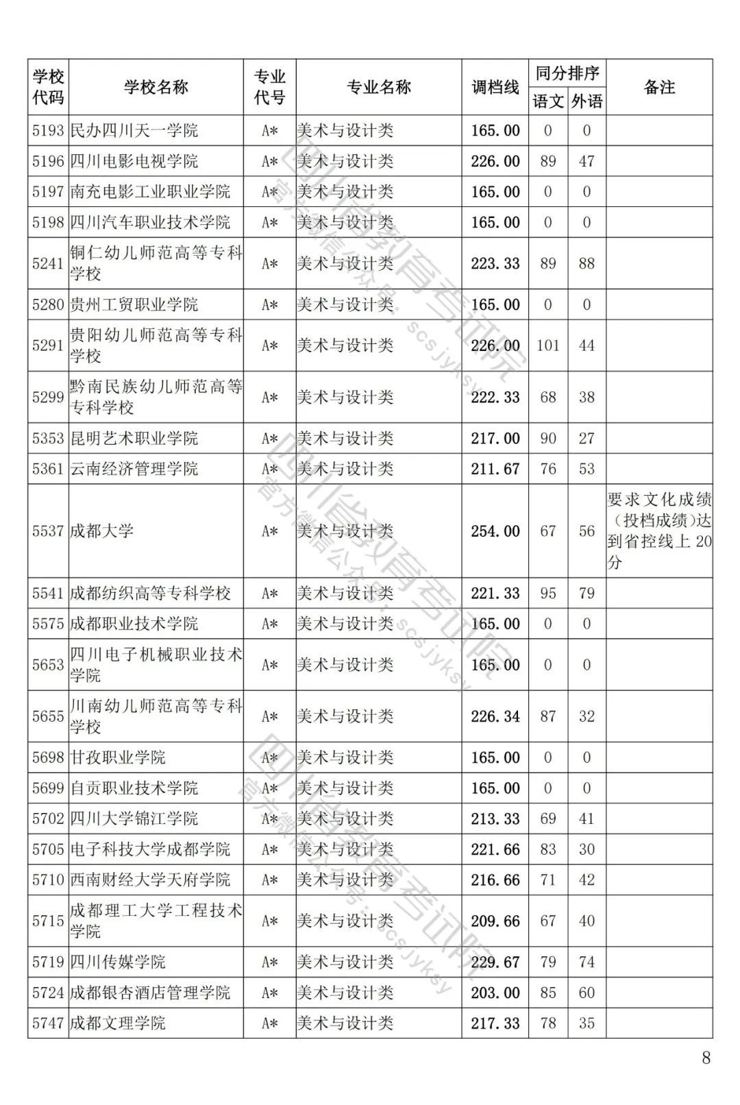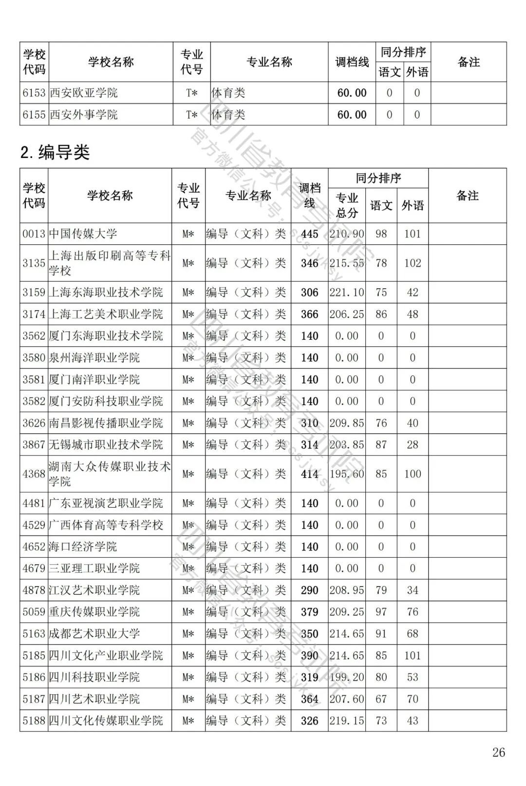 四川省2022年普通高等學校藝術體育類專科批已于8月5日投檔錄取。為方便廣大考生和家長及時了解錄取信息,省教育考試院按非編導類和編導類發(fā)布了藝體類分校、分專業(yè)類調檔線。