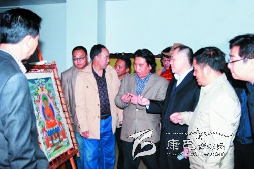 本網(wǎng)訊(高志安 鄭勇 文/圖) 6月21日,國家文化部非遺司司長馬文輝在省文化廳副廳長澤波陪同下,到四川省藏文學(xué)校調(diào)研藏族唐卡畫繪藝術(shù)嘎瑪嘎孜畫派教學(xué)情況。嘎瑪嘎孜畫派國家級傳承人、省藏校高級講師顔登澤仁就嘎瑪嘎孜畫派的歷史、傳承情況以及現(xiàn)狀向馬文輝一行作了匯報。省藏校負(fù)責(zé)人匯報了學(xué)校唐卡藝術(shù)教學(xué)情況。馬文輝一行一邊聽取匯報,一邊觀看師生作品和學(xué)生現(xiàn)場作畫,并向師生了解情況,聽完匯報、看完學(xué)生繪畫后,馬文輝對省藏校的唐卡藝術(shù)教育工作給予了高度評價,并要求學(xué)校繼續(xù)做好弘揚(yáng)民族優(yōu)秀傳統(tǒng)文化工作,為社會主義文化大發(fā)展作出新貢獻(xiàn)。