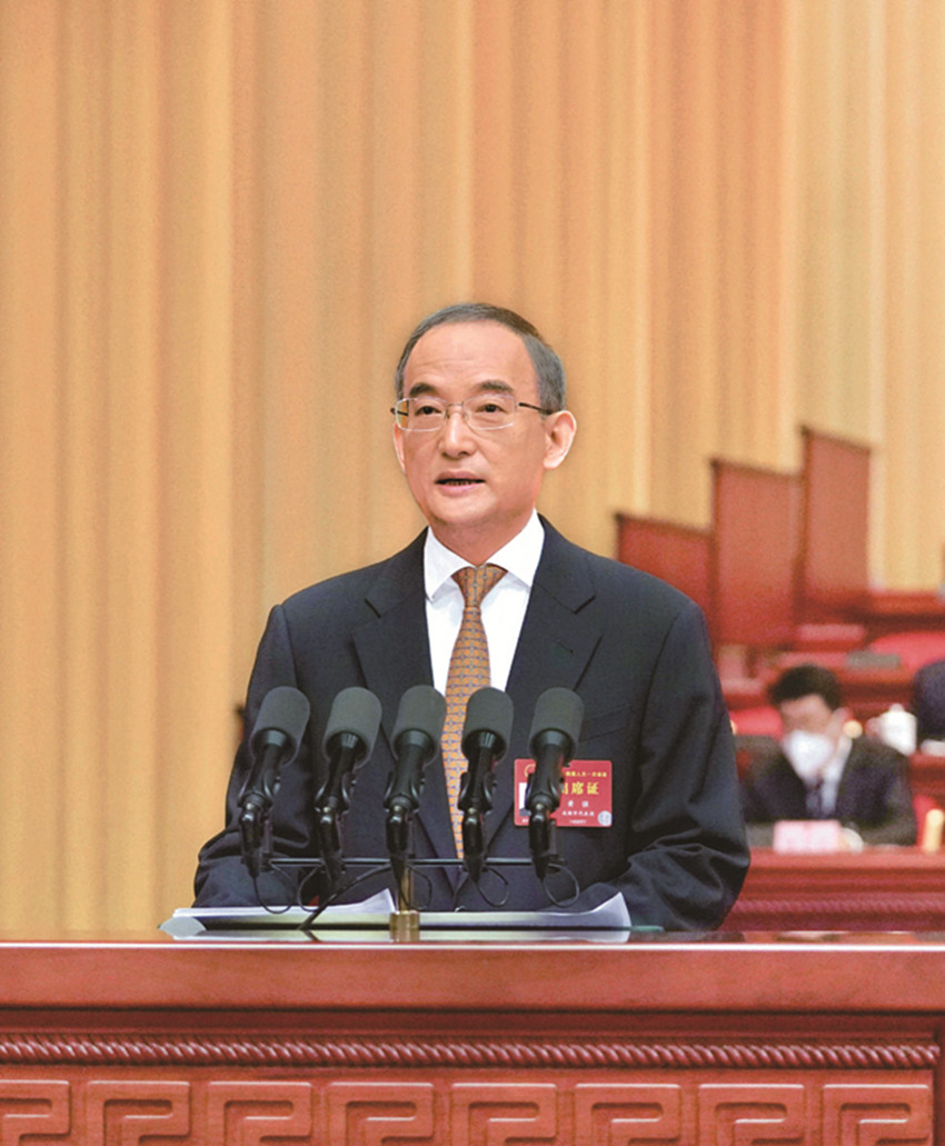 在熱烈的掌聲中,黃強作政府工作報告。報告分四個部分:一、過去五年和2022年工作回顧;二、今后五年發(fā)展主要目標和重點任務;三、2023年工作安排建議;四、更好肩負新征程政府職責使命。