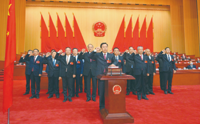 大會(huì)閉幕后,新當(dāng)選的省第十四屆人大常委會(huì)委員和省第十四屆人大各專門委員會(huì)組成人員進(jìn)行了集體宣誓。