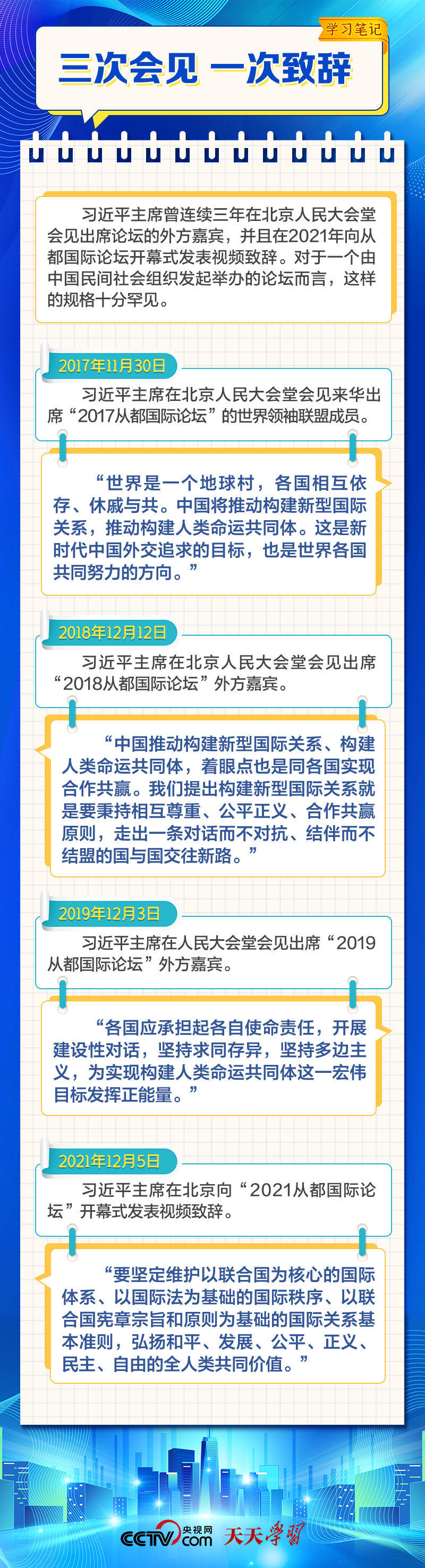 天天學(xué)習(xí)12月4日,習(xí)近平主席在致“2023從都國際論壇”的賀信中強(qiáng)調(diào),面對(duì)前所未有的世界之變、時(shí)代之變和歷史之變,人類社會(huì)必須團(tuán)結(jié)起來,堅(jiān)持互學(xué)互鑒、開放包容、合作共贏,弘揚(yáng)全人類共同價(jià)值,共同建設(shè)更加美好的世界。