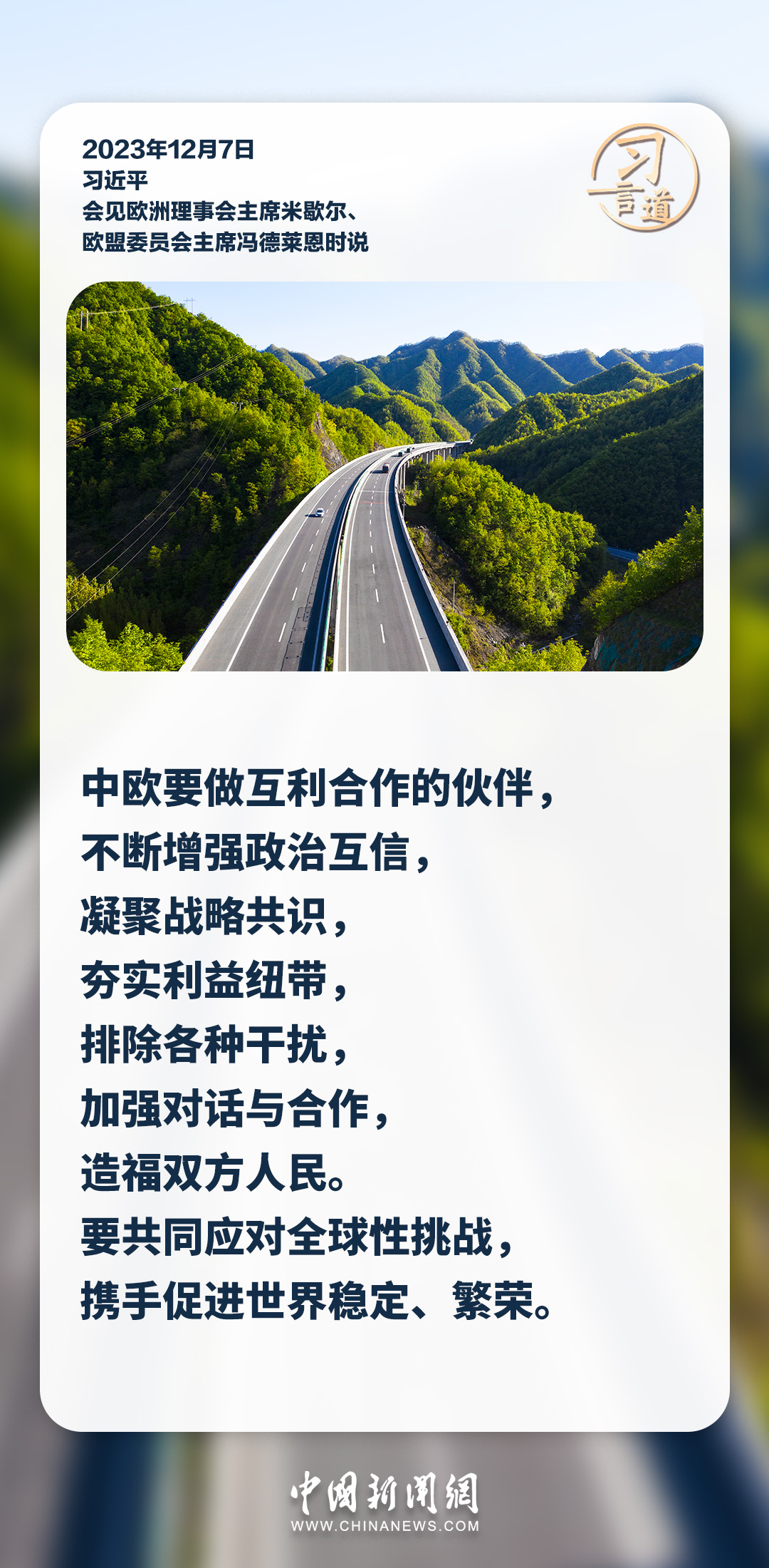 12月7日,國(guó)家主席習(xí)近平在釣魚臺(tái)國(guó)賓館會(huì)見來華舉行第二十四次中國(guó)—?dú)W盟領(lǐng)導(dǎo)人會(huì)晤的歐洲理事會(huì)主席米歇爾和歐盟委員會(huì)主席馮德萊恩。習(xí)近平說——