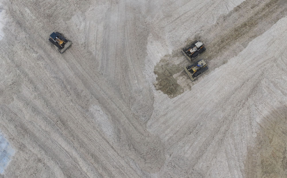 12月12日,在廣西湘桂華糖制糖集團來賓紙業(yè)有限責(zé)任公司,工作人員在整理蔗渣(無人機照片)。