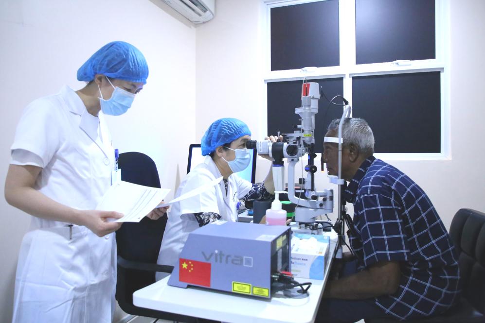 ??69歲的艾哈邁德·卡洛是中國醫(yī)療隊(duì)“光明行”活動(dòng)的獲益者。兩個(gè)兒子曾帶著患有眼疾多年的老人輾轉(zhuǎn)多家醫(yī)院,均因手術(shù)難度大而無法得到有效治療。2023年,中國醫(yī)療隊(duì)醫(yī)生經(jīng)過充分評估后,給老人成功實(shí)施了手術(shù)。術(shù)后揭開眼罩時(shí),老人家激動(dòng)地說:“醫(yī)生,我可以看到你的胸牌了,謝謝你!”老人的兒子也在社交媒體發(fā)帖說:“真誠感謝中國醫(yī)生?!背酥尾?,中方還著力培訓(xùn)當(dāng)?shù)蒯t(yī)務(wù)人員,力爭為當(dāng)?shù)卮蛟煲恢А皫Р蛔摺钡难劭茖<谊?duì)伍。