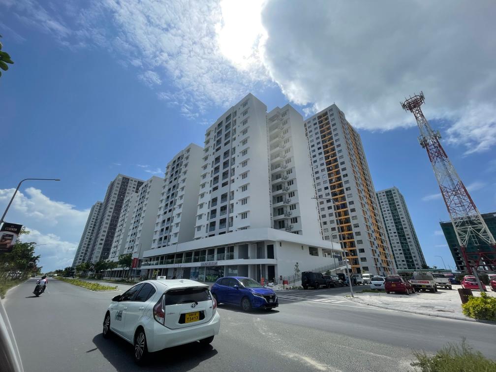 ??這是中國機(jī)械設(shè)備工程股份有限公司在胡魯馬累承建的公寓樓。