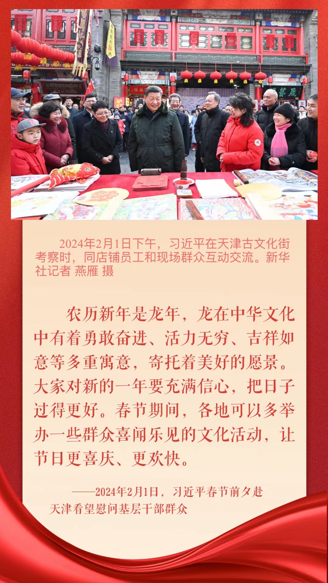 改善人居環(huán)境要保護(hù)歷史文化底蘊(yùn),發(fā)展經(jīng)濟(jì)、服務(wù)百姓的同時,要注意弘揚(yáng)民族文化和傳統(tǒng)文化。黨的十八大以來,習(xí)近平總書記在地方考察調(diào)研時多次強(qiáng)調(diào),中國式現(xiàn)代化離不開優(yōu)秀傳統(tǒng)文化的繼承和弘揚(yáng),叮囑各地要讓歷史文化和現(xiàn)代生活融為一體,更好弘揚(yáng)中華優(yōu)秀傳統(tǒng)文化,更好服務(wù)經(jīng)濟(jì)社會發(fā)展和人民高品質(zhì)生活。在春節(jié)這個中華民族傳統(tǒng)節(jié)日,一起來重溫!