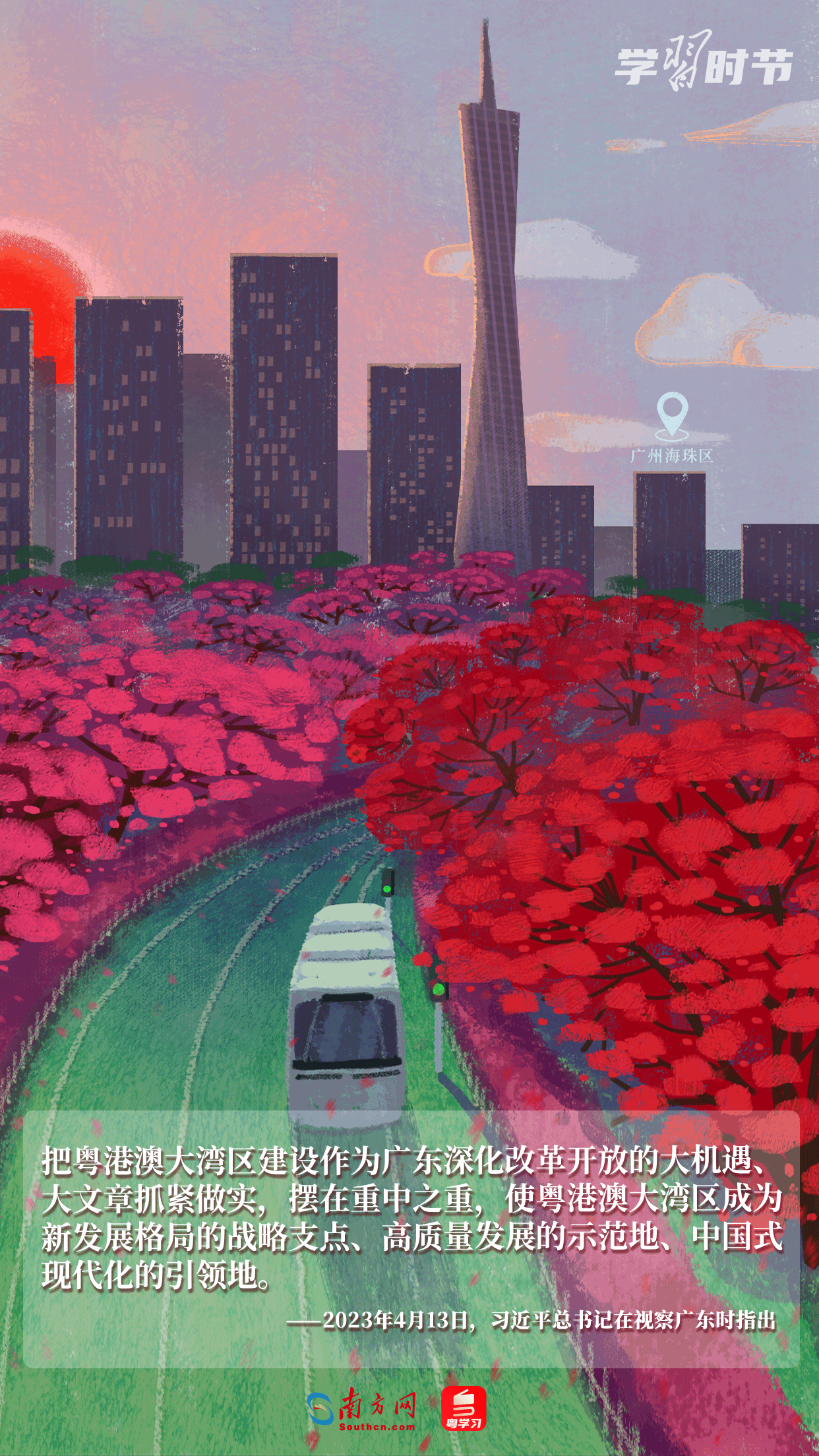 春潮奔涌,蓄勢競發(fā)。《粵港澳大灣區(qū)發(fā)展規(guī)劃綱要》發(fā)布五周年之際,讓我們在粵港澳大灣區(qū)的七彩畫卷里,重溫習(xí)近平總書記的諄諄教誨與殷殷囑托。