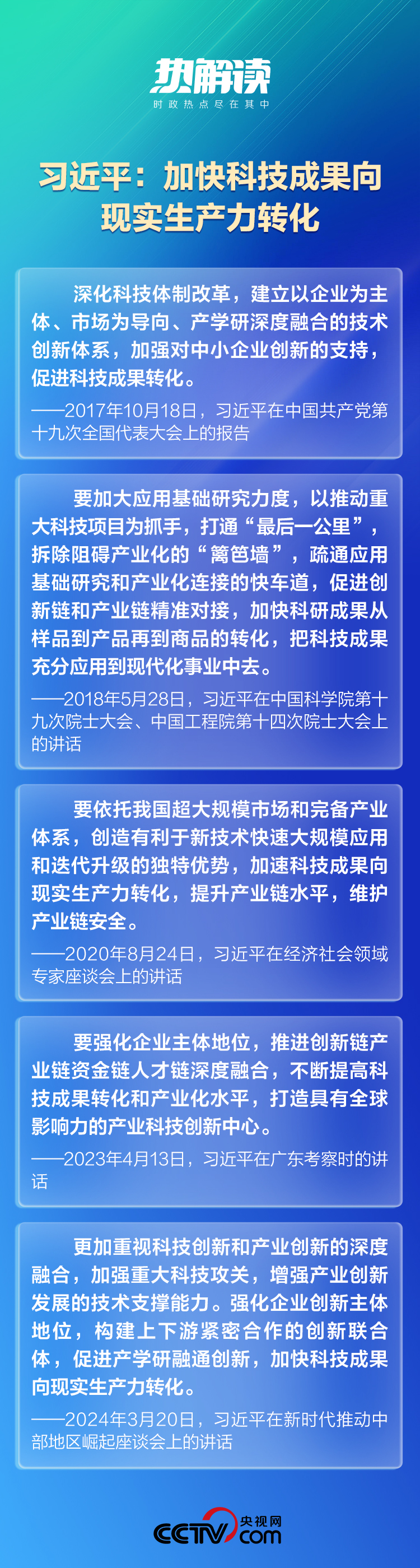 “深化科技體制改革”“圍繞產(chǎn)業(yè)鏈部署創(chuàng)新鏈、圍繞創(chuàng)新鏈完善資金鏈”“構(gòu)建上下游緊密合作的創(chuàng)新聯(lián)合體,促進(jìn)產(chǎn)學(xué)研融通創(chuàng)新”……總書(shū)記反復(fù)強(qiáng)調(diào)的,正是科技成果轉(zhuǎn)化的關(guān)鍵密鑰。