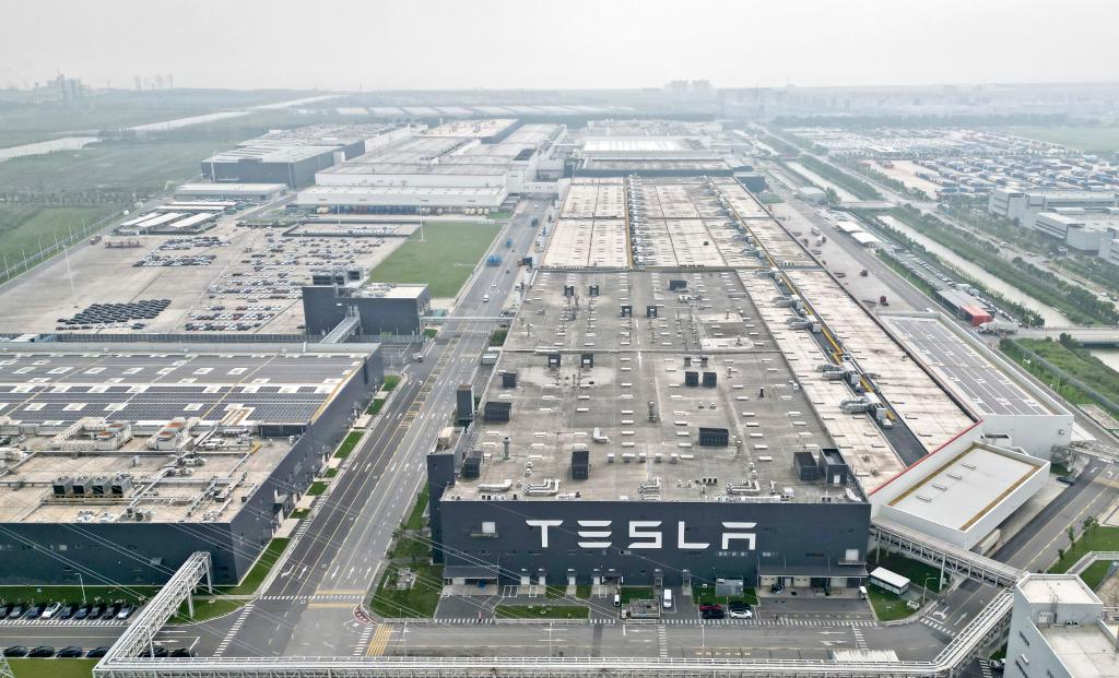 ??這是2023年9月26日在中國(上海)自由貿(mào)易試驗(yàn)區(qū)臨港新片區(qū)拍攝的特斯拉上海超級工廠(無人機(jī)照片)。新華社記者劉穎攝