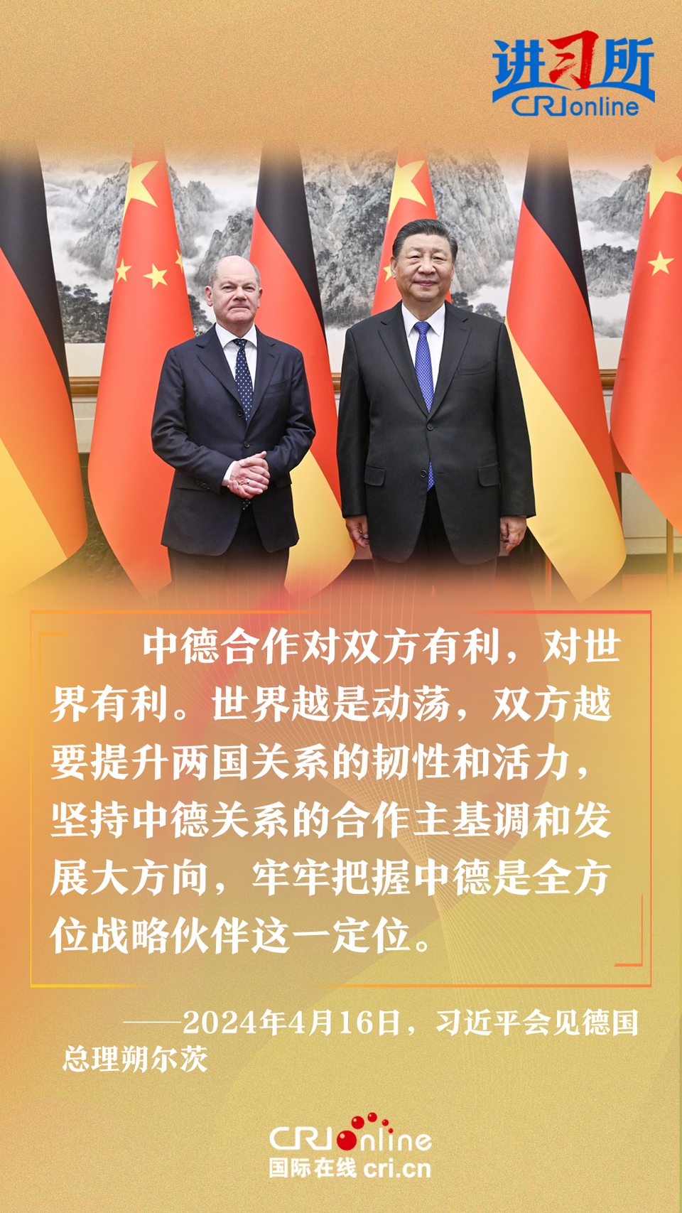 4月16日上午,中國(guó)國(guó)家主席習(xí)近平在北京釣魚(yú)臺(tái)國(guó)賓館會(huì)見(jiàn)了德國(guó)總理朔爾茨。習(xí)近平指出,中德合作對(duì)雙方有利,對(duì)世界有利。世界越是動(dòng)蕩,雙方越要提升兩國(guó)關(guān)系的韌性和活力。中德是世界第二、第三大經(jīng)濟(jì)體,鞏固和發(fā)展中德關(guān)系的意義超越雙邊關(guān)系范疇,對(duì)亞歐大陸乃至整個(gè)世界都有重要影響。兩國(guó)要從長(zhǎng)遠(yuǎn)和戰(zhàn)略角度看待和發(fā)展雙邊關(guān)系,攜手為世界注入更多穩(wěn)定性和確定性。