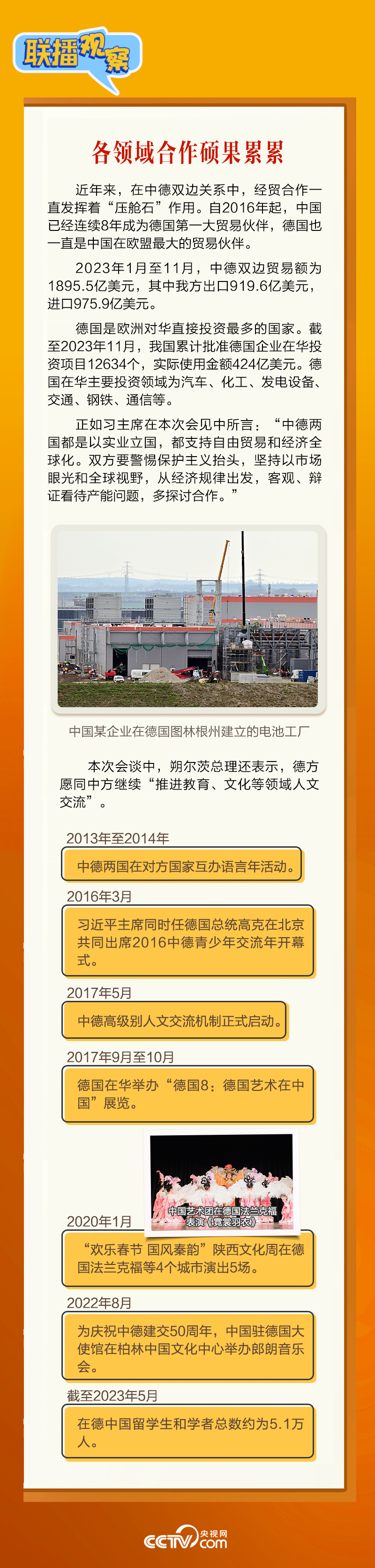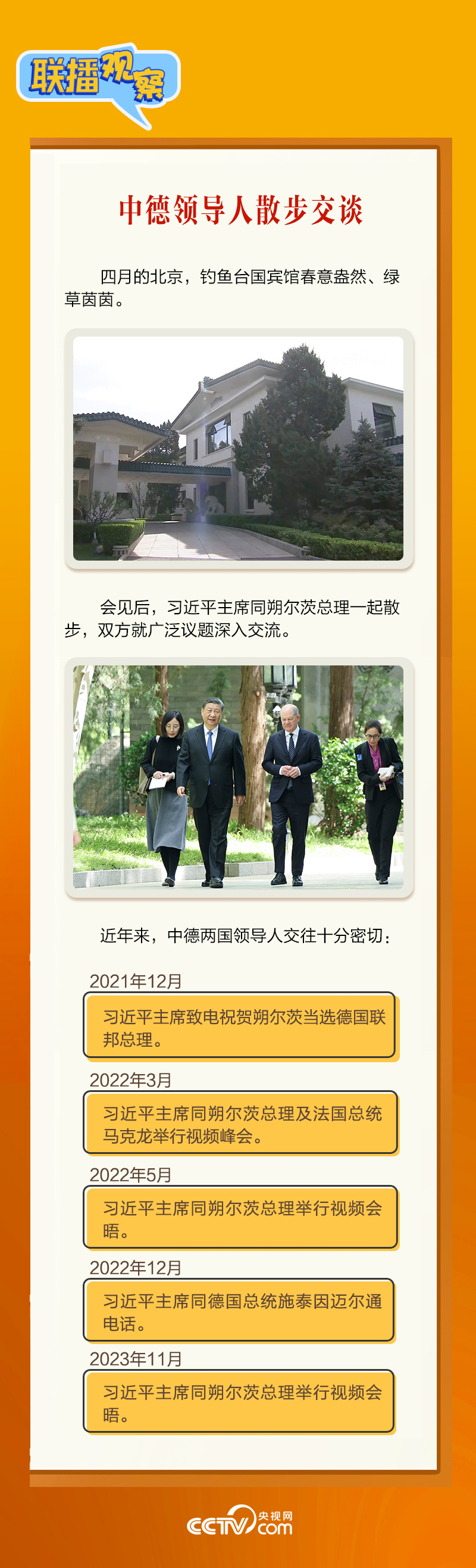 4月16日上午,習(xí)近平主席在北京釣魚(yú)臺(tái)國(guó)賓館會(huì)見(jiàn)朔爾茨總理。會(huì)見(jiàn)中,習(xí)主席強(qiáng)調(diào),要“牢牢把握中德是全方位戰(zhàn)略伙伴這一定位”。中德建立全方位戰(zhàn)略伙伴關(guān)系10年來(lái),兩國(guó)如何共同發(fā)展,相互成就?央視網(wǎng)《聯(lián)播觀察》帶您了解。