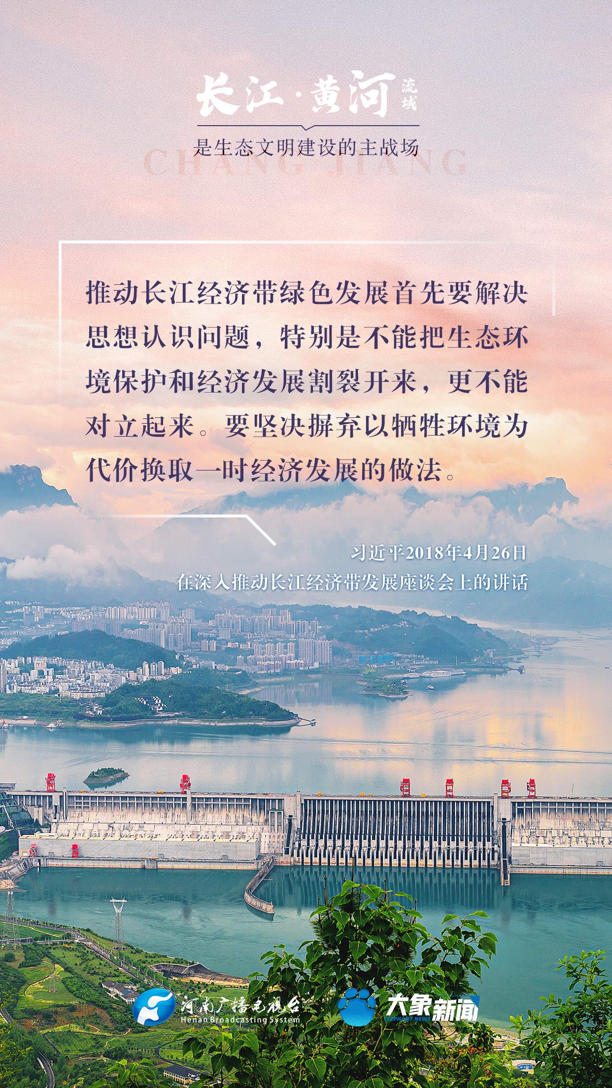 長江、黃河都是中華民族的母親河,習近平總書記高度重視長江、黃河的生態(tài)保護,多次諄諄告誡:“保護母親河是事關中華民族偉大復興和永續(xù)發(fā)展的千秋大計”“長江、黃河流域是生態(tài)文明建設的主戰(zhàn)場”等等。在第55個世界地球日到來之際,大象新聞與您一起,感受總書記對母親河的深厚情懷。