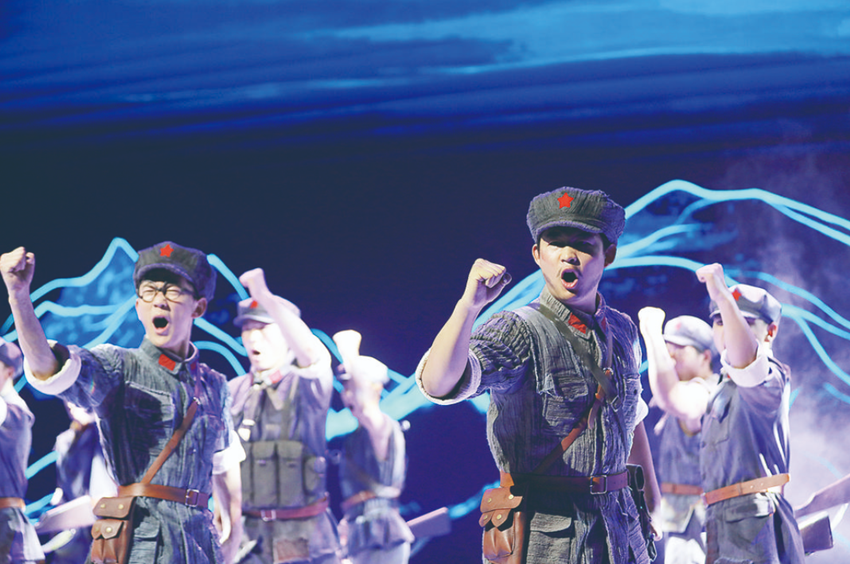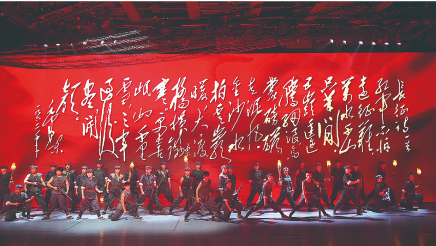 “同志們,跟我前進!”“以最快速度趕到瀘定橋,才是我們的首要任務……”舞臺大幕開啟,影像結合舞美形成一組巨型浮雕,在燈光的映照下,紅軍戰(zhàn)士堅毅的臉龐漸漸浮現(xiàn),他們佇立在瀘定橋旁,目光如炬。燈滅,炮火聲從遠處傳來……這是大型原創(chuàng)舞臺劇《飛奪瀘定橋》中的場景,每天上午10時30分和下午3時,該劇在瀘定縣紅軍飛奪瀘定橋紀念碑公園內的紅軍劇場上演。偉大的長征是中國共產黨和紅軍譜寫的壯麗史詩,是中華民族偉大復興歷史進程中的巍峨豐碑。舞臺劇《飛奪瀘定橋》聚焦宏大歷史中的典型事件,以紅軍長征途中飛奪瀘定橋戰(zhàn)役為背景,以一個紅軍小號手的視角,生動講述紅四團晝夜奔襲240里,22名突擊隊員在槍林彈雨中踩著13根鐵索成功奪下瀘定橋的故事,藝術展現(xiàn)紅軍的堅定革命信念和必勝信心,讓觀眾在感動中重溫偉大長征精神。