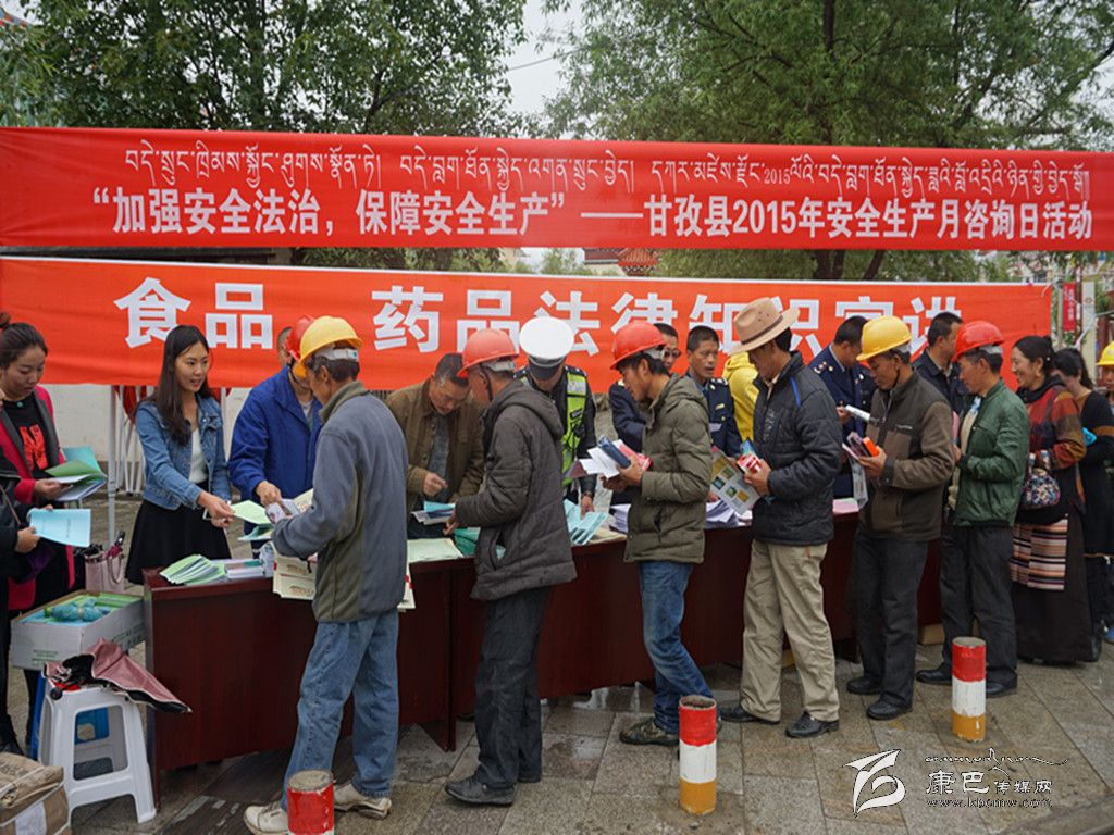 6月8日,甘孜縣開展了“安全生產(chǎn)月”宣傳咨詢?nèi)栈顒?dòng)。該縣安監(jiān)、防災(zāi)減災(zāi)、消防、電力等16個(gè)部門通過在城區(qū)繁華地段懸掛橫幅,現(xiàn)場設(shè)立宣傳展板、設(shè)置咨詢臺(tái)、派發(fā)宣傳資料等多種形式,廣泛宣傳安全生產(chǎn)法律法規(guī),傳播安全知識(shí)。