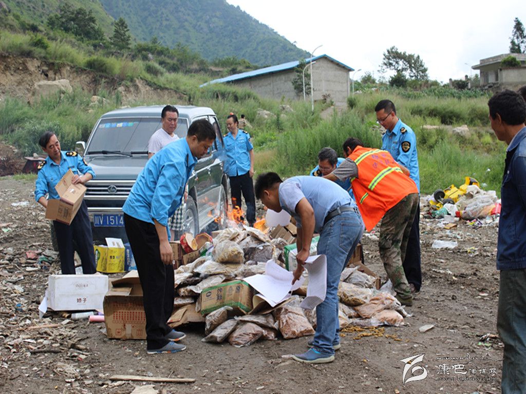 本網(wǎng)訊 (陳晗 尼胡克布 文/圖)日前,瀘定縣食品藥品監(jiān)督管理局集中銷毀對(duì)前期查獲的一批假冒牛肉干和假冒酒,總價(jià)值117670.4元。此次銷毀行動(dòng)表明了該縣嚴(yán)厲打擊假冒食品的決心和信心,有力震懾了生產(chǎn)經(jīng)營(yíng)假冒食品的不法分子,切實(shí)保障了全縣人民群眾飲食安全。圖為銷毀現(xiàn)場(chǎng)。