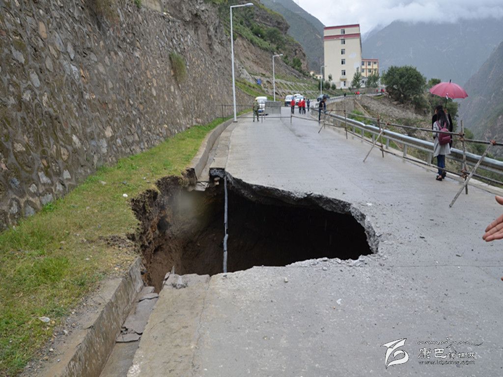 本網(wǎng)訊 (李麗瓊) 今日上午9時許,國電一名清潔工在清掃路面時發(fā)現(xiàn),康定市孔玉鄉(xiāng)阿斗溝和寸達兩村的通村路面一段發(fā)生地陷并形成深坑。得知情況后,該鄉(xiāng)政府立即組織人員到現(xiàn)場查看險情。在現(xiàn)場,公路水泥路面下方的路基部分下陷形成了直徑約8、9米和不可預計高度的深坑。該鄉(xiāng)立即銜接猴子巖國電公司采取警示標牌、隔離帶的設立工作,同時與企業(yè)協(xié)商迅速開展排險工作。目前,當?shù)卣呀?jīng)介入處理,并已逐級上報相關部門。