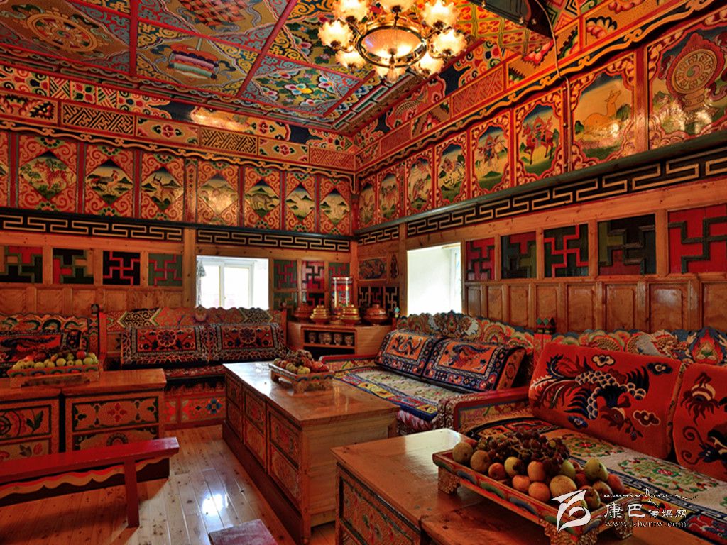 在功能布局上,打造別墅式風(fēng)格,對(duì)公共區(qū)域和每個(gè)院落進(jìn)行改造,擴(kuò)大綠化面積,強(qiáng)化視覺(jué)效果;在外觀設(shè)計(jì)上,根據(jù)藏族傳統(tǒng)的建筑風(fēng)格,提升風(fēng)貌改造,從外觀上體現(xiàn)原滋原味的本土特色;在色調(diào)搭配上,采用藏族偏愛(ài)的暖色調(diào)和古典色加以渲染,融合現(xiàn)代與民族特色;在室內(nèi)裝修上,使用精美的藏式地毯、銅器、陶制品等傳統(tǒng)藏式器皿裝飾,采用唐卡、藏族題材油畫等元素點(diǎn)綴,并適當(dāng)差異化裝修,以體現(xiàn)自然隨性舒適,讓游客透過(guò)每一個(gè)家庭感受到濃郁的藏寨風(fēng)情。