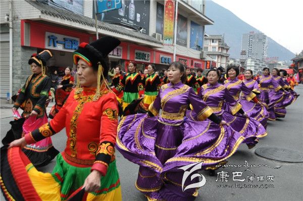 由瀘定縣弦子隊(duì)、金甘孜、色達(dá)協(xié)會(huì)、康定駐瀘協(xié)會(huì)組成的藏族方隊(duì);卡迪伲拉、北段社區(qū)、夕陽(yáng)紅、瀘橋鎮(zhèn)演出隊(duì)組成的彝族方隊(duì);企業(yè)協(xié)會(huì)和教師協(xié)會(huì)組成的扇子方隊(duì);巾幗腰鼓隊(duì)和南段社區(qū)瀘園快樂(lè)隊(duì)組成的鑼鼓方隊(duì)等演出人員穿上節(jié)日的盛裝,與全縣人民喜迎新春。