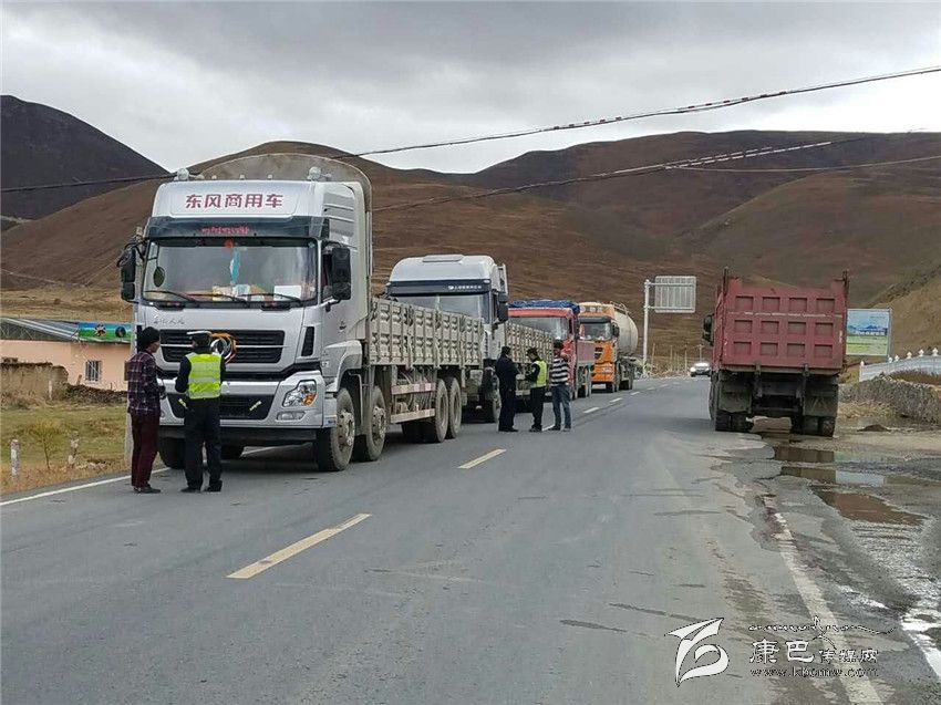 理塘交警檢查車輛。