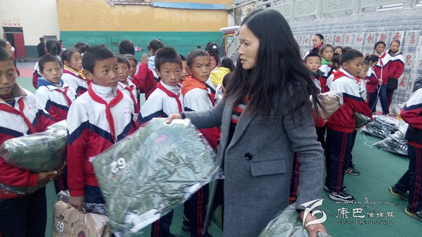 本網(wǎng)訊(陳科 文/圖)11月9日,新龍縣城關(guān)小學(xué)操場上五年級二班的56名學(xué)生整齊列隊,個個面帶微笑,翹首以待。在他們面前的,是一疊疊等待分發(fā)的嶄新的棉襖外套、加絨褲子、雪地靴和少兒科普讀物。這些承載著濃濃關(guān)愛的愛心物資,正通過援藏支教老師劉秀蘭的手,逐一分發(fā)到孩子們手中。