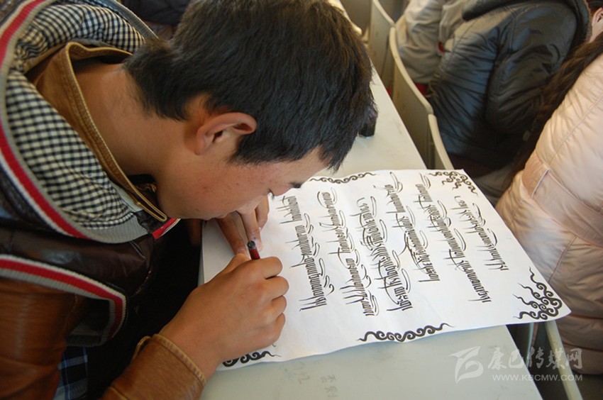 學生正在學習藏文書法。